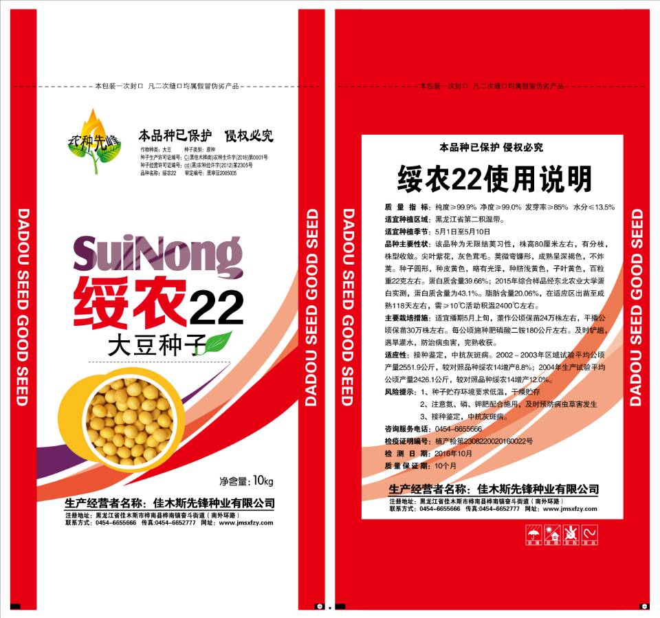 佳木斯先鋒種業有限公司位于黑龍江省佳木斯市樺南縣,企業法人,張丕東。公司成立于2005年6月6日,注冊資金3156萬元。是一家集科研、生產、收儲、加工、銷售于一體的高新技術種子企業。企業原占地面積10,000平方米,建筑面積 5,700平方米,其中擁有辦公大樓1,000平方米,種子加工廠房1,500平方米,標準化倉儲庫3200平方米。